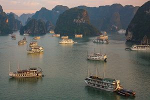 220 km in nordöstliche Richtung weiterfährt, erreicht das sensationelle UNESCO Weltnaturerbe – die Halong Bucht. 2000 naturgeschützte kleine Felsinseln haben im Norden des südchinesischen Meeres ein traumhaftes Meereslabyrinth geschaffen. Ihre Schönheit gleicht einer prachtvollen Perle auf unserem blauen Planeten Erde.